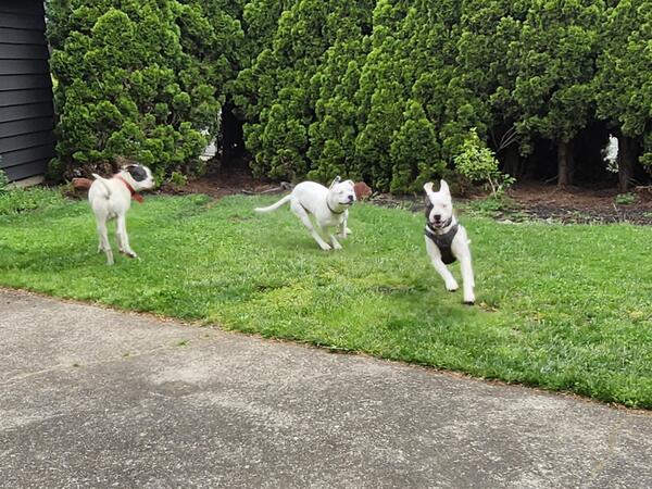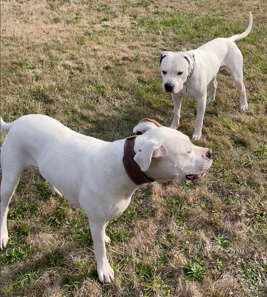 message krvll7403 about this ad Dogo Argentino planned litter available July 2025 (at 8 weeks old Avg liter size 10 pups. All white with black nose and eye liner is standard. Recessive Black eye patch gene possible. Pirata black markings are desired. Photo1: Nova (Dam) Photo2: Nova Photo3: Nova front/left; Tyke back/right Photo4: Tyke (center) with Tykes sister and visiting male Dogo. Photo5: Tyke (Sire) Contact by text for reservation 503.572.7807. |