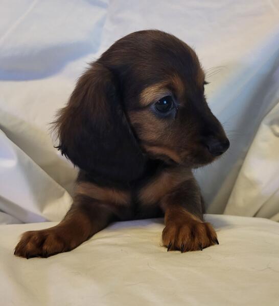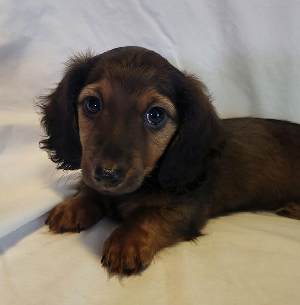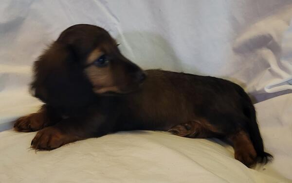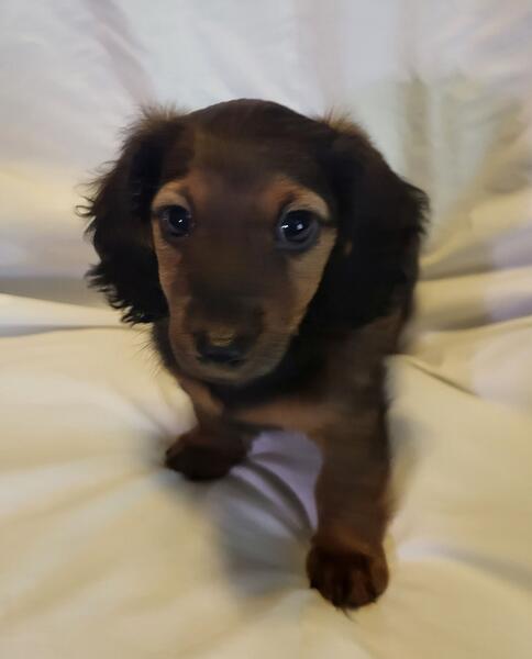 message mechell66 about this ad AKC Longhaired Dachshund females. Born 6/24/2025 and ready for their forever homes! Mom and dad on site. They come with two sets of puppy shots, wormed, papers in hand, and puppy starter pack. I do not ship. You are welcome to pick up the puppy at our home, we can meet somewhere or I'm willing to fly with the puppy for an additional fee. $1600.00 for limited registration, an extra $100.00 for full. Serious inquiries only please. |