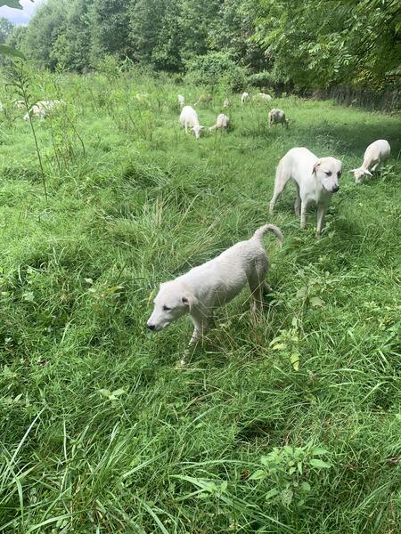 message adrianalynch about this ad Male LGD pup born April 23, 2024 (almost five months old Maremma father, Anatolian-mix mother. All white. Fairly long-haired, looks more like a Maremma than an Anatolian. Born in the field, and has always been with sheep. Has completed 3 rounds of vaccinations. He stays 24/7 with the flock and is already an attentive, enthusiastic and effective guard. Tolerates cats around the barn. One of a litter of three (other two are promised He does not show feed aggression. Shy of strangers but soon warms up to a caregiver. $300 for this ready-to-work LGD (This includes one 5-Way vaccination and two 9-Way vaccinations (Please understand that as he is still only half grown, he cannot be expected to SINGLEHANDEDLY defend your flock against a group of coyotes. But he is already effective in a team. |
