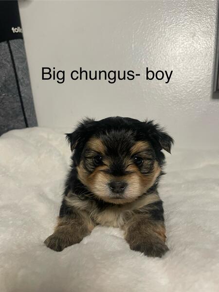 message rnmcc1872 about this ad 2 boys currently are 12 weeks ! boys we currently have names big chungus -hes the biggest, and toast. Currently being potty trained with potty pads and fake turf. They are also eating puppy food hard sometimes mixed with water to soften up other times with water and dehydrated puppy food. Feel free to text me on here and Ill give you my number to speak privately about the puppies |