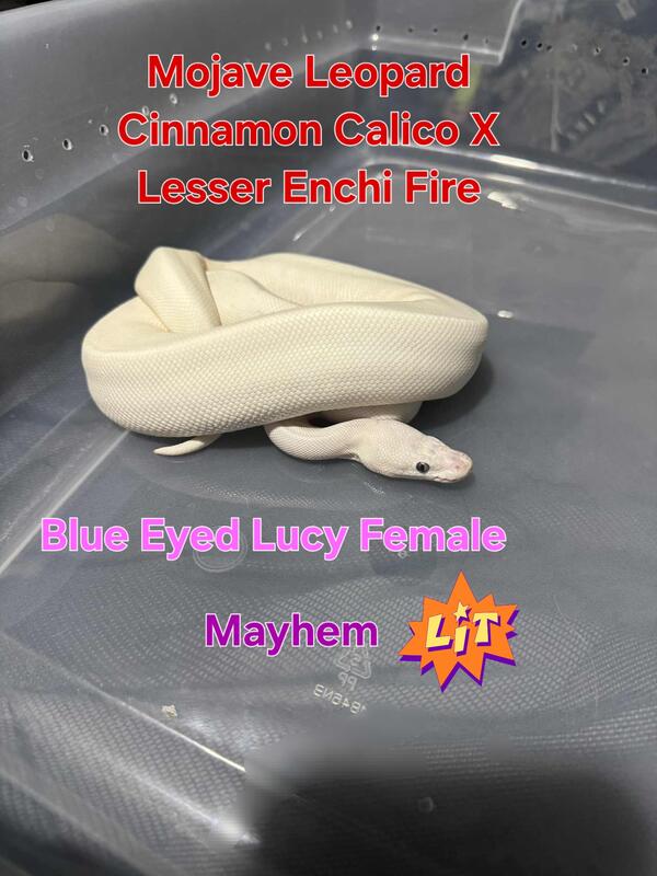 message resurrection2012 about this ad 3 boys, 2 girls- Albino pinstripe male, Albino pewter female, Black pastel albino male, Orange dream enchi clown male, Blue eyed Lucy female (Mojave Leopard Cinnamon Calico X Lesser Enchi Fire) Plus their 5 drawer rack with temp control, feeding tongs and snake hook |