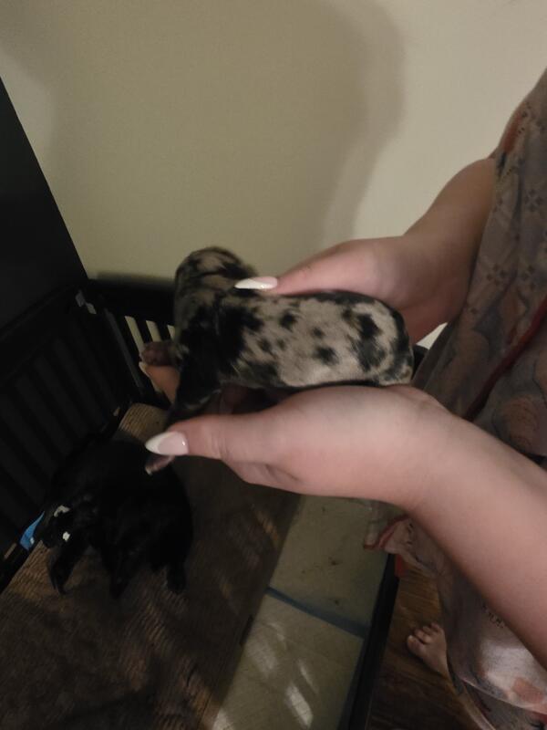 message lookatmyweiner about this ad I have 2 females, one dapple and one piebald, that will be ready to go to their forever home on Jan 13. Come fully vet checked, 1st set of shots, de-wormed, and puppy pad trained. Please contact if interested for more info a price |