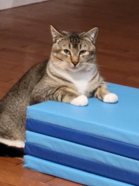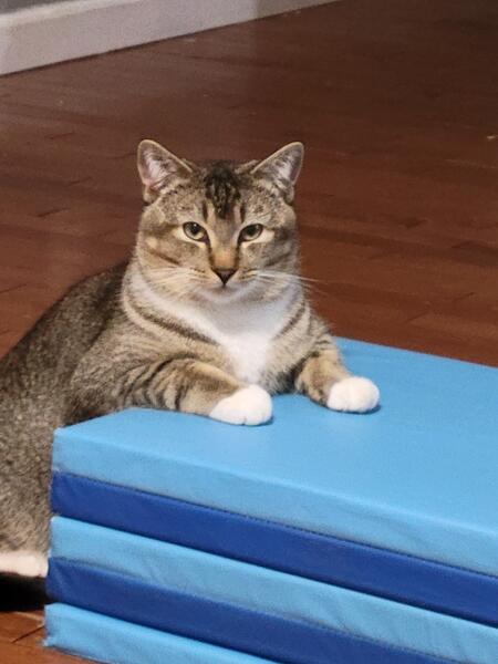 7 months old light gray male cat, very nice, soft fur, cuddling, good around kids,