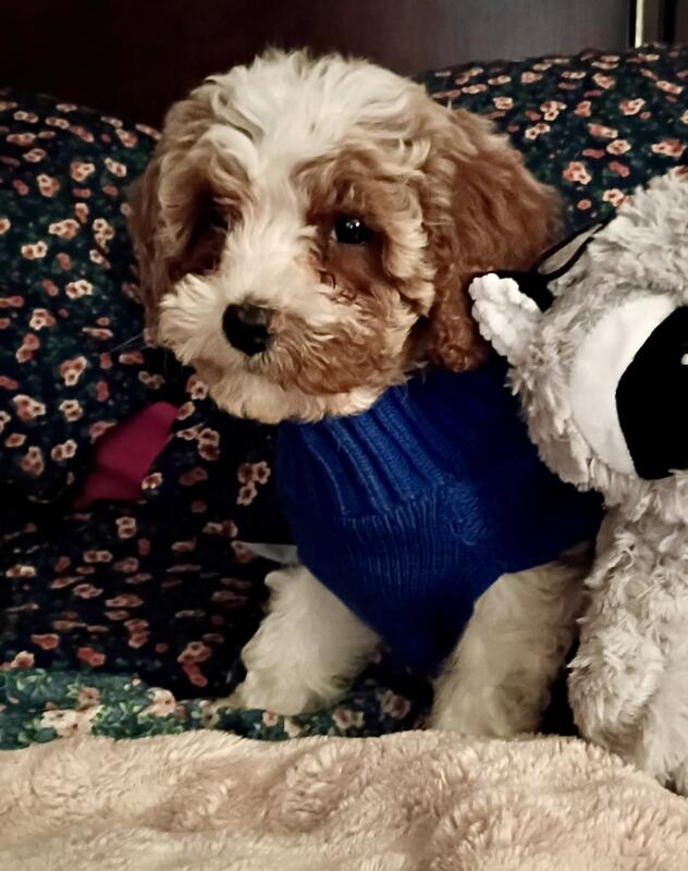 message pnksprk4562 about this ad Louie is an adorable Blenheim color 3 month old f1b Cavapoo, his mom is a Cavapoo & Dad is a Mini Poodle He is non-shedding & He is Ckc registered and utd on his vaccinations He is crate trained and also puppy pad trained. He is super friendly, loves kids more than anything and toys He is excepted to weigh 12 pounds grown. He comes with his papers, vet papers as well and blue buffalo food and treats. A bed, his collar, clothing, toys and his name tag Were located in London, Ky and can meet off of either exit Asking $675 for this cutie, serious inquiries only. Text 606-31two-7670 |