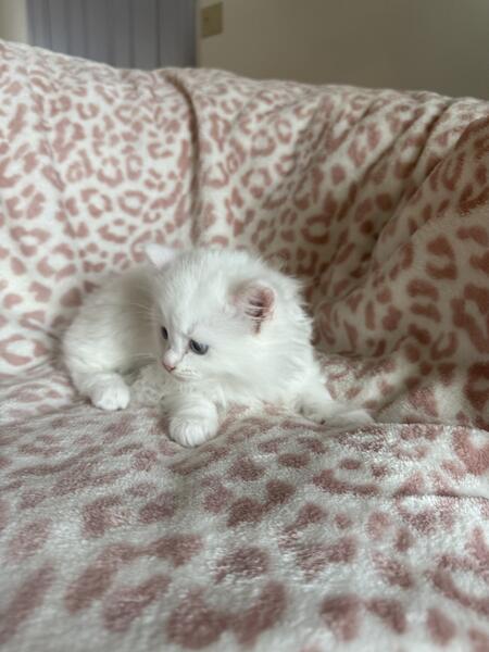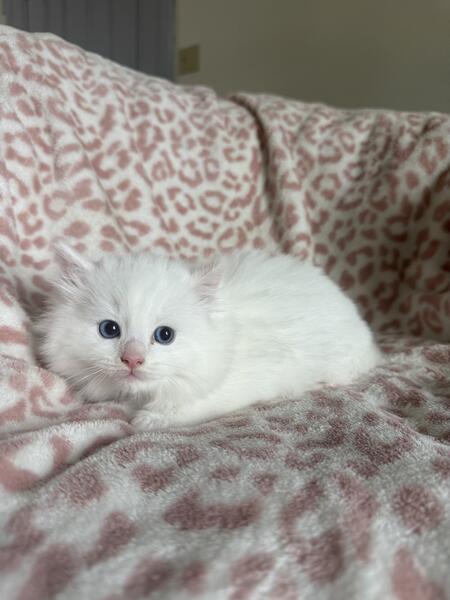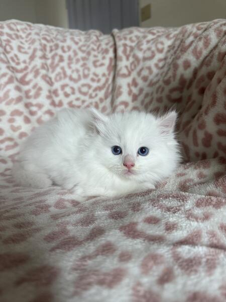 message riverrags about this ad Elvis, a Ragdoll solid white male kitten looking to go to his forever home! Both parents are TICA registered. All kittens are up to date on shots and raised in a family environment. Elvis has a littermate, Presley, who is also a solid white male. Kittens are ready for their new homes beginning May 9th. Please feel free to text or call me at 570-692-0227 (tel:570-692-0227 I am more than happy to answer any questions you have. |