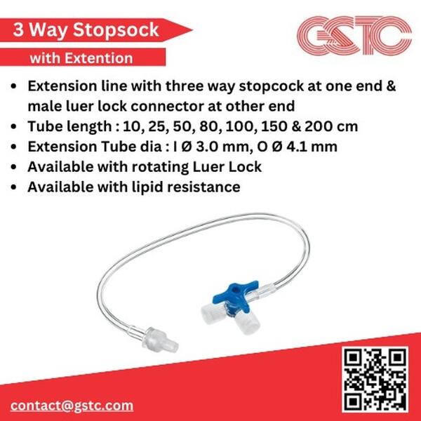 message garimagstc about this ad The 3-way stopcock with extension tube is a medical device designed to safely control the flow of fluids or medications in a patients body. It includes a three-way valve (stopcock) and a flexible extension tube for easy access during treatments. This product is commonly used in IV therapy and critical care. As a leading 3-way stopcock with extension tube manufacturer and exporter, we offer quality-tested devices. Also known as a three-way stopcock with extension or a 3-way extension cannula, it ensures smooth and accurate fluid transfer in clinical settings. At GST Corporation, we prioritize quality, innovation, and customer satisfaction, ensuring our 3-way stopcock with extension tube meets international standards for performance and hygiene. |