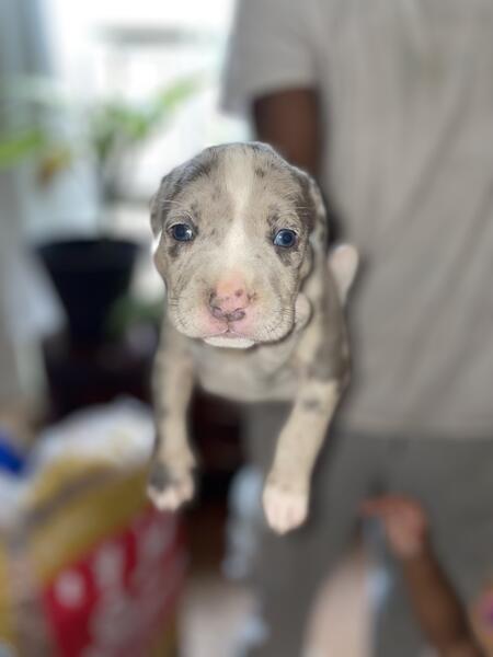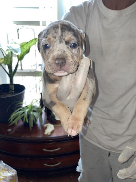 message logldank about this ad I have 12 American bullies pocket/standard for 1k abkc paperwork in hand shots dewormed abkc registered 8 girls 4 boys 2 Merle boys 2 tri boys 1 gray and brindle girl 7 Merle girl |