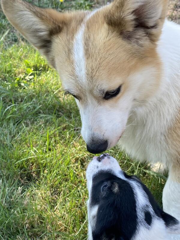message melnel about this ad Corgi / Blue Heeler mix. Beautiful variety pack of colors! red, blue, sable, black/tan. First vaccines and deworming, well socialized with kids, people and other dogs. |