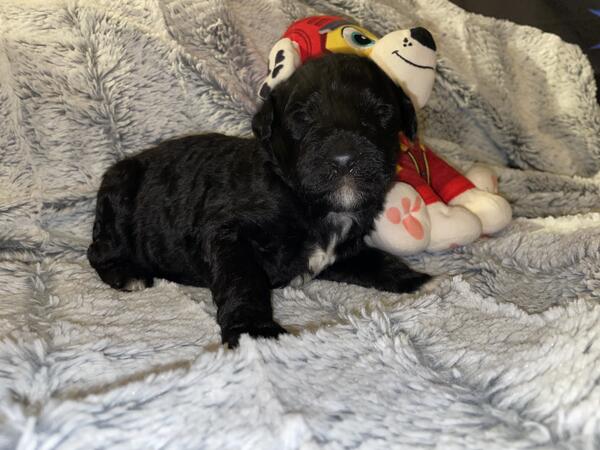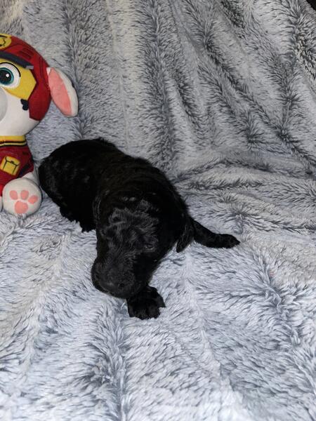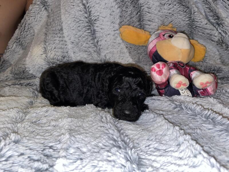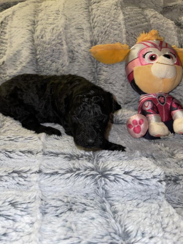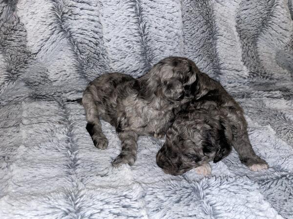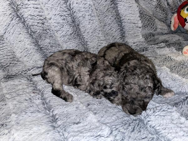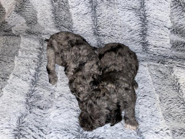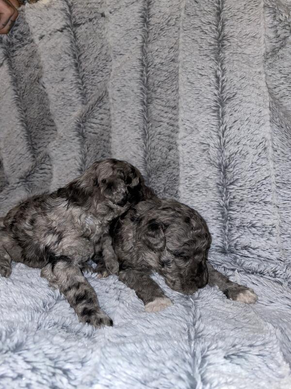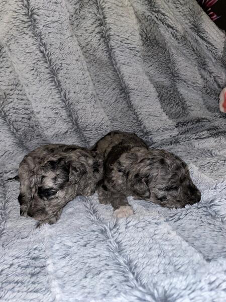 message missb0422 about this ad I would like to announce the arrival of Daphne Mae and Tommy Lees pups! April 7 we welcomed 11 healthy puppies and as of today we have 6 left. We have males and females that are black and males and females that are silver Merle. They are expected to be full grown at around 45 pounds. Mother is half golden retriever and half standard poodle and father is 100 percent standard poodle. Pups will come well socialized with people of all ages as well as other pets. Pups will have first vaccine as well as deworming. These pups have some awesome personalities. Potty training has been started and going great! I am a traveling nurse, so I do go to many places. If you are on the way, I would be glad to deliver your newest family member! Or I can meet for an additional cost. Text or call 4197871467. Please do not ask to lower the price. These prices are already very very low |