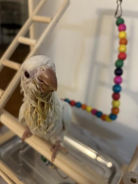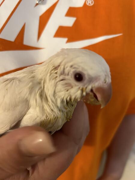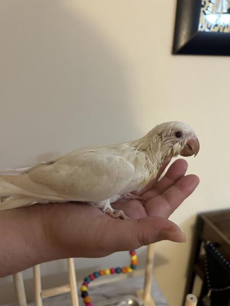 message parrotmaster about this ad 10 weeks old RARE albino baby Quaker parrot. Eating on his own but still wants that one hand feeding a day . Very loving baby. Loves to cuddle and loves to fall asleep in the palm of your hands. Very very sweet little baby. Would make a perfect addition to any family. If interested please text or call. My number is 201-250-7295. Ps the yellow on his chest is the bird formula. A little messy eater lol |