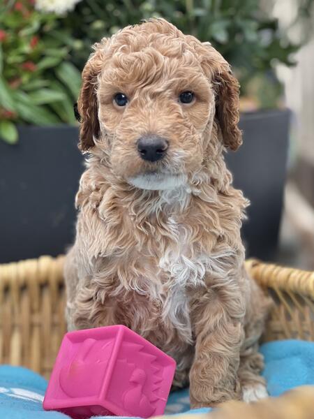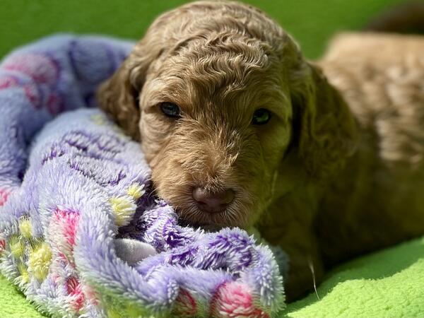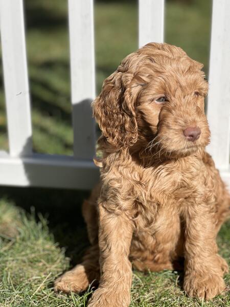 message puppygirl about this ad F1b Goldendoodle puppies ready soon. They are raised in our home with puppy culture protocol and lots of early training. They are from health tested parents and come with a two year genetic health guarantee. They will be 45-55 lbs. when grown. Prices based on color and coat type. $2000-2500. Call for more info and to reserve your puppy today. 970-215-6860. www.puppylovedoodles.com |