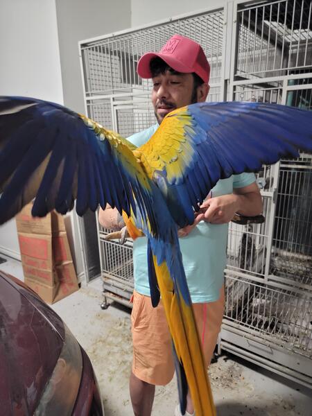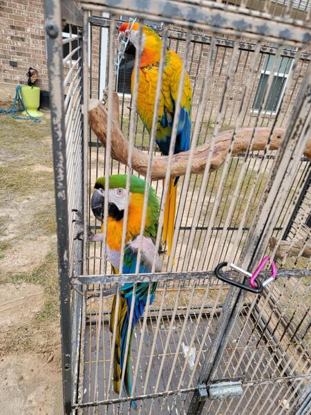 message jpdll9332 about this ad Rehoming pair of Macaws Male: Name- Pretty Boy Age- Approximately 10 years old Temperament- Can be handled with the right person. May take a while to bond. Fully Flighted- Yes Female: Name- Peekaboo Age- Approximately 15 years old Temperament- Must create a bond with her first to handle Fully Flighted- Yes Special note: She has a plucking condition and is feather free on her chest, also plucks her wings Included is a large and spacious cage 80" x 40" x 72" (shown in photos) were both birds currently reside. Both birds have been sexed to confirm gender. Theyre not a mated pair, but sill like each others company. |