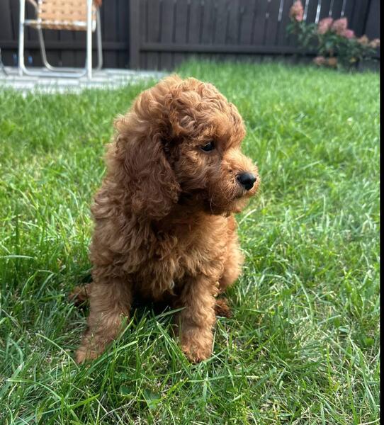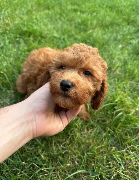 message antonfzv about this ad Meet Oliver. He's the sweetest little pup. Gorgeous red color coat, absolutely stunning. He's very friendly and loves to cuddle. He's well socialized and will be great with kids and other dogs. He would make a great addition to any family. He's 3/4 mini poodle, 1/4 golden retriever, making him an f1b mini. This type of goldendoodles is considered hypoallergenic and low to no shedding. Full grown he should be 20-25 lbs. He already started on potty training and ready to leave to his furever home anytime now. He's all up to date on shots, dewormed and will come with a 1 year congenital health guarantee. For more information or to schedule a visit please call or text 414-317-1412. We're located in Milwaukee WI, midwest hand delivery or nationwide shipping possible for an extra fee. |