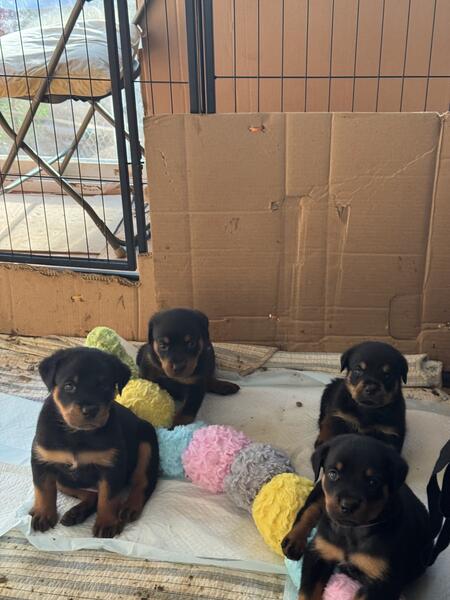 message rotties100 about this ad Sire 140 Dam 150 both parents on sight.Over 100 Champions in pedigree.Beauty and Brains,Blocked heads,Tree Trunk thick bodies,Great temperaments and well socialized. Born May 12th and raised indoors puppies have tails docked and due claws removed,1st and 2nd shots, dewormed and vet checked.We offered a 6 months health guaranteeCall 404-310-6936 or 470-985-5246 , |