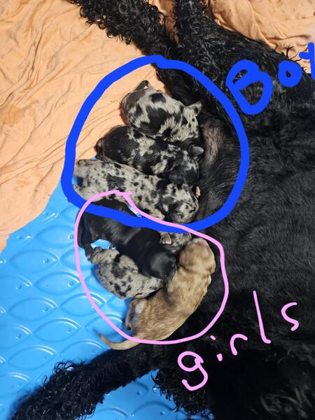 message shanyany27 about this ad We strive to produce 25 to 35 pound healthy, happy, low shedding, hypoallergenic, and well socialized Mini double doodles. Our dogs are our indoor family pets with a fenced in yard and are regularly seen by our vet and are up to date on all vaccinations. They are playful and loving dogs and are regularly around other people and animals. We have our 2 Mini Black Labradoodle girls and our stud is a gorgeous tri Mini Merle Aussiedoodle to give us that perfect hypoallergenic and low shedding merle coat. Our puppies will have a less matting flippy curl coat as we have demonstrated in our pictures of our adults with their coats grown completely out. Please visit our to view our program and we will post available puppies on our facebook Text or call Shannon at 7657443784 |
