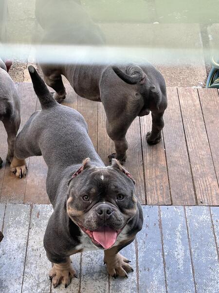 message juiceyj23 about this ad Blue tri male just turned 1 November 11. Very friendly with ppl children & other dogs . Approved homes only. No breeding pet home only . Parents are posted as well. He is fully grown & up to date on shots & ears croppped |