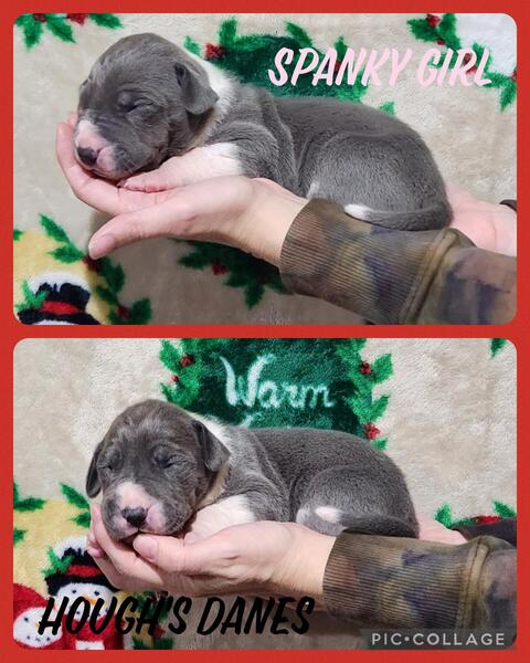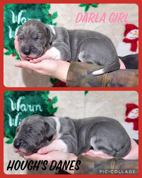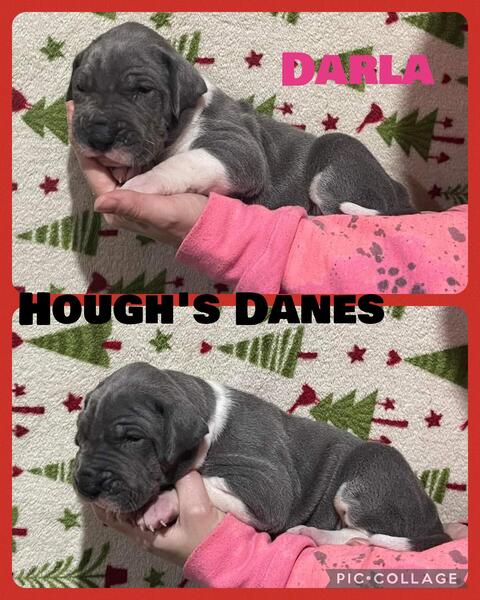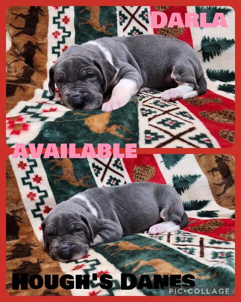 message houghsdanes about this ad AKC Great Dane Puppies Born 11/21/23 Blue, Blue Merle, blue mantle and Blue Harlequin 1800.00 2 females available both blue mantle Price listed is pet price limited AKC. Pups pictured are from Novas last litter. (Creed is grandpa to this litter Blue) Louie Blue Harlequin is father. Lilac Mantle Nova is Mother. Dam (mom) is our sweet, loyal and calm girl Nova, she is 140 pounds, the sweetest girl you will met. Very laid backed and loyal. Not a mean bone in her body. Happy to play or be on the couch. Sire (dad) is our amazing boy Creed. He is 175 pounds. Both are excellent with our children and our other dogs. Puppies are raised in our home with kids and other dogs. Use to normal household activities. Pre-spoiled with lots of love. Puppies will be dewormed 4 times, first shots given by vet, vet checked 2 to 3 times. Dew Claws removed. Health Certificate from vet, Life time breeder support, 2 year health guarantee and return contract. Each puppy will come a puppy pack. (collar, leash, toy, blanket that smells like mom, puppy care guide and food) $300 deposit to hold puppy of your choice. The deposit is typically due at 1 to 2 weeks old when puppies are chosen by families. Puppies will leave at 8 weeks. For more info please contact 262-220-3614 via text or call or via e mail Willing to provide references as well. More videos and pics on Houghs Danes on Facebook. message houghsdanes about this ad |