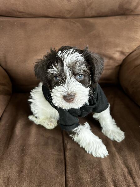 message zooloo12 about this ad Beautiful, liver and white, blue-eyed schnauzer puppies. Must see. Available for delivery on the east coast. 919-685-ZeroTwoOneNine or 484-983-Two116. |