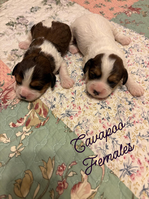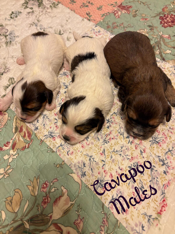 message vemerckle about this ad Super cute Cavapoo puppies that will be 8 weeks old 2/14/26, I have 2 females and 3 males available. I ask $600 for these puppies. A $100 deposit will hold your chosen puppy and the remaining $500 due at pick up. The puppies will come up to date on vaccines and dewormings. Please feel free to text me at 740-621-0210 with any questions |