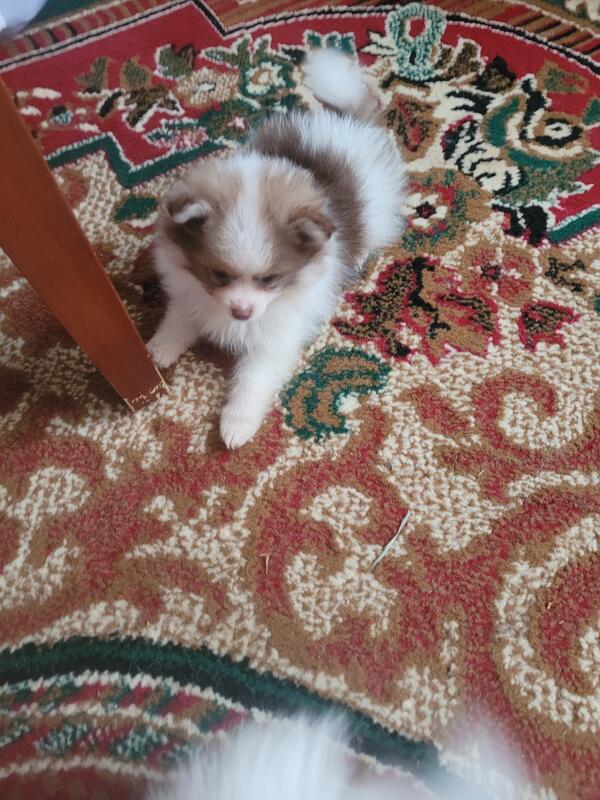 message stchn721 about this ad Purebred male pomeranian puppy available now .first shot dewormed flea med extremely gorgeous boy . Chocolate parti extra nice coat baby doll face parents on site dad 4lbs mom 7 lbs.9 weeks old |