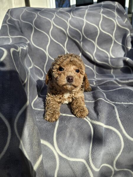 message tnt1121 about this ad These little poodle are just the sweetest little puppies. Mom is 6 pounds dad is. 8 pounds. They have declaws removed they will have natural tails they will come with age appropriate vaccines and wormings before they can leave! Boy and girl left |