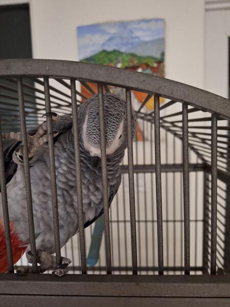 African grey female tame whistle, healthy and perfect condition. She has a ring on her leg 11 years old