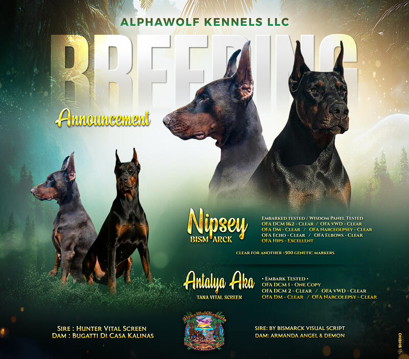 message alpha9653 about this ad Mariska X Nipsey First & Second pick are reserved Antalya X Nipsey First Picks have been reserved Reservations are open! Parents are imports Health tested and clear Whats included - AKC registration (Full or Limited) - Health Certificate - Microchipped - Dewclaws Removed - Tails Docked - Ears Cropped - Free 30 day pet health insurance - Free basic obedience training for up two years - Discounts with Embark - Discounts with NuVet Labs - Pup Pack (has ear posting supplies and more Limited AKC 4000 Full AKC 4500 |