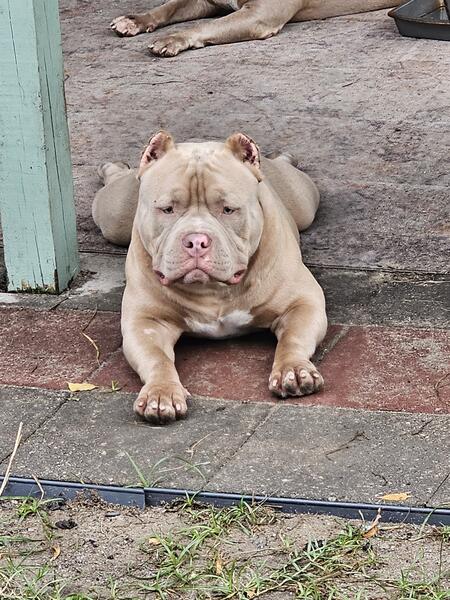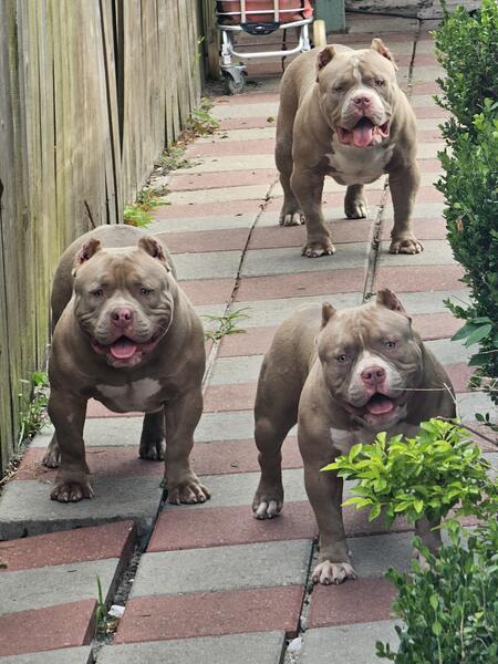 message americanbullz about this ad American Bully Pups 7 Months Old ABKC Registered (912Bulls) I have three 9-month-old beautiful American Bully pups available, all with great pedigree K2 and Golden Child blood on the top side. One strong, healthy male is show-quality with excellent structure asking $3,000 with full rights. One female looks good, very nice structure available for $2,000 pet home or $3,000 with full breeding rights. The second male has a slight limp, but has very nice structure with a huge head, hes offered as a pet home only for $1,500, or $2,000 with full rights for those interested in breeding potentially. Serious inquiries only. Located in Georgia. Contact for videos or more info. I talk numbers just message me |