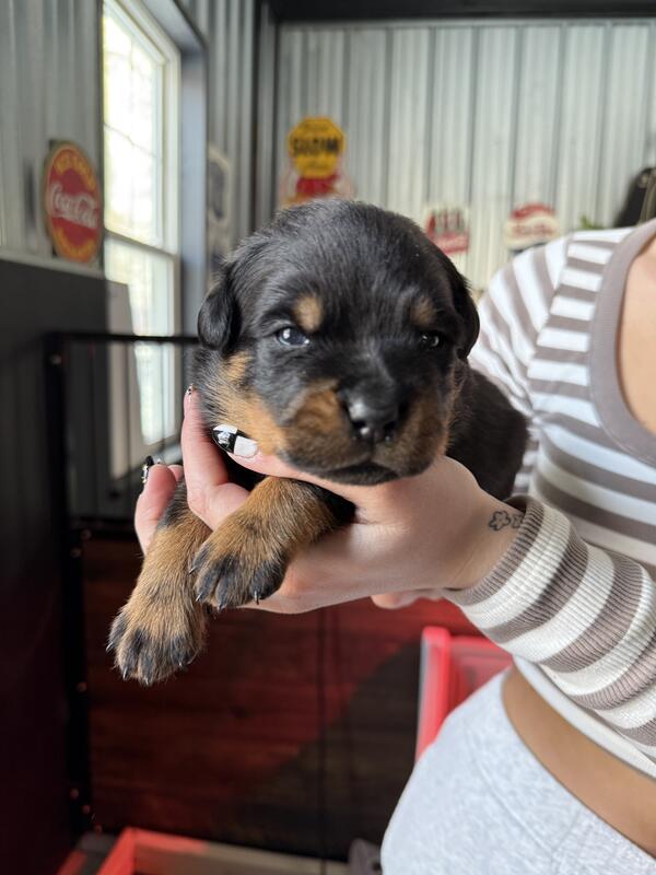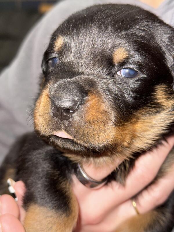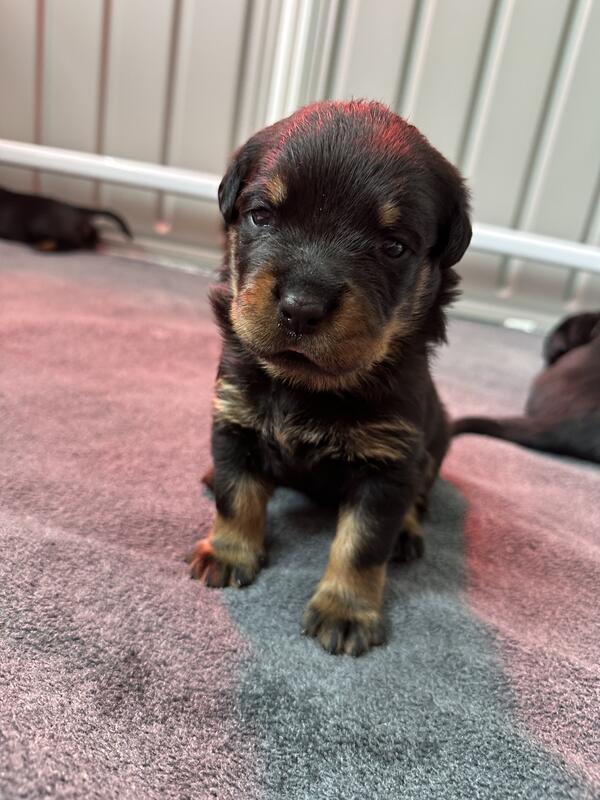 message bckrt787 about this ad 6 female Rottweiler puppies. Born Jan 3rd 2025 Sire Zilla VH Autumn woods Sire: Gucci Vom Hause Pista Cora Von der Brushy Ridge Sire: Eminem Vom Hause Edelstein Parents are FOA, JLLP, Excellent vet check Super Import Bloodlines (pedigrees on request) All pups will be vet checked UTD on shots and socially raised with some training in place |