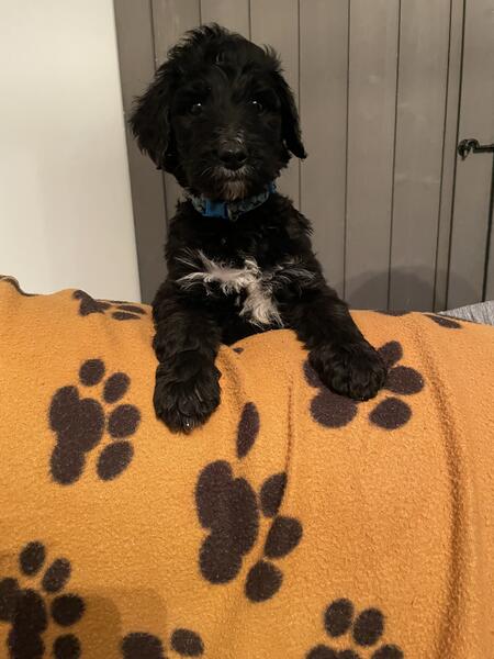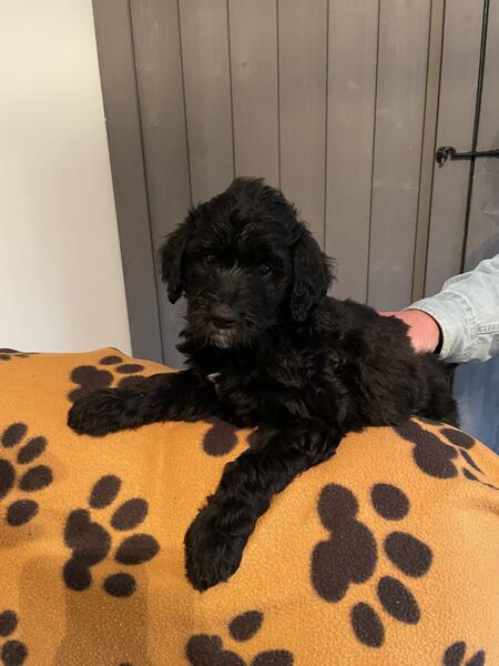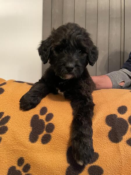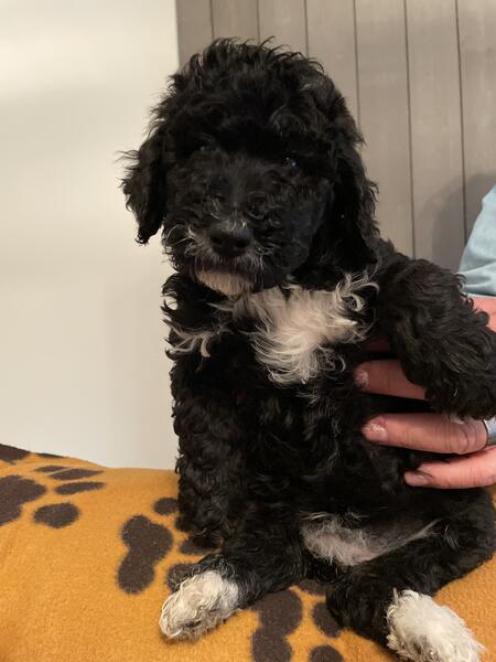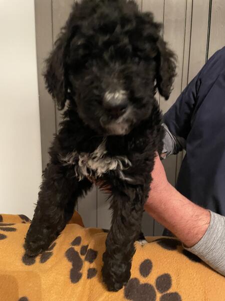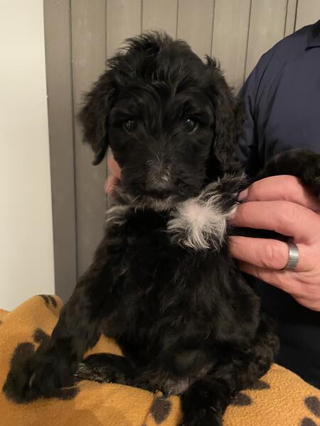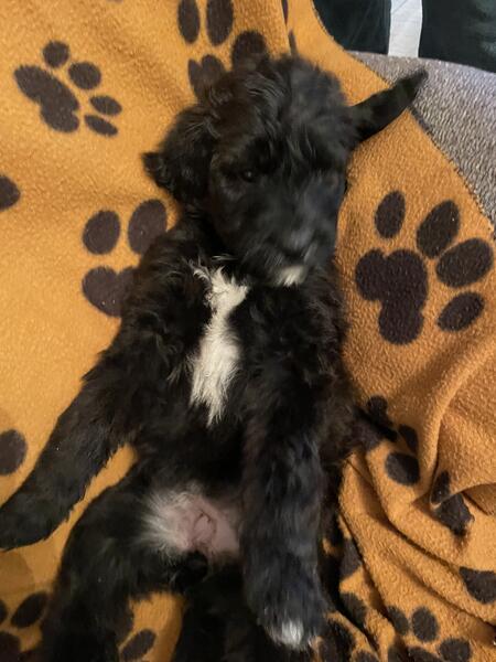 message tzmmr0991 about this ad Two male, four female F1b bernedoodle puppies ready for their furever homes February 22. Parents on site, mom a red standard 45 lb poodle and dad a 90 lb f1 bernedoodle. Pups have been raised in a home environment, well socialized, potty training started and pups have been weaned to kibble. Deworming will be completed and pups come home with a puppy starter/care package. |