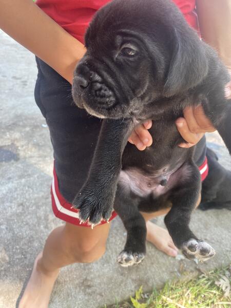 message keisha19 about this ad Big black energy corsos. Three weeks old. Tails Docked. They will be ready in three more weeks. With first shots and wormed. Ear cropping is available. The best smartest dogs you could ask for. Three without deposits. They will be 900.00 without ears cropped. And with ears cropped 1350.00 |