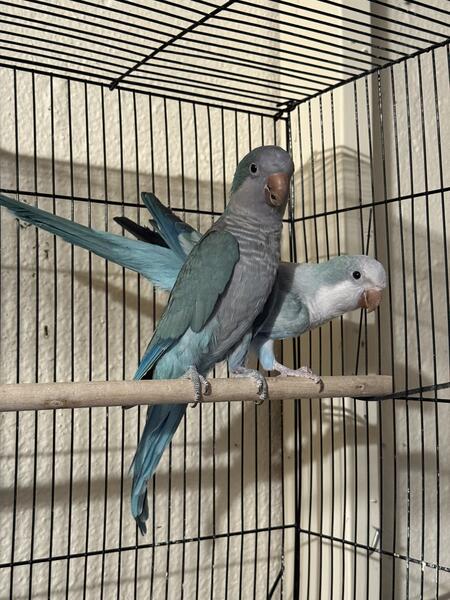 Blue Opaline Quaker Parrot Bonded Pair -- 550.00