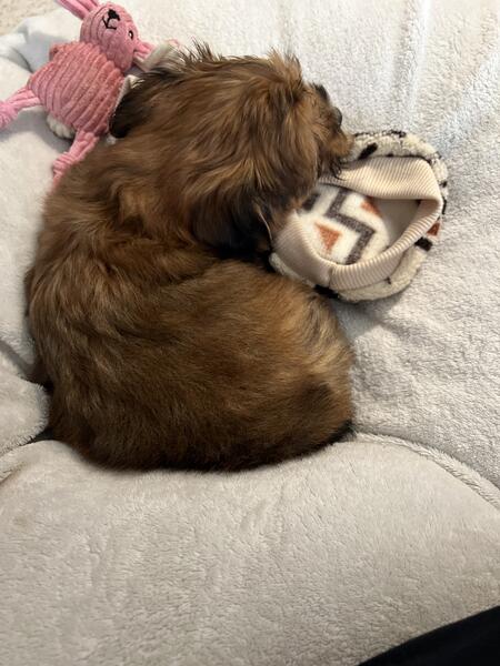 message jnnpn0508 about this ad 9 week old Shih-Poo male puppy. Super sweet little boy. He will be around 8-10 lbs full grown. He has been started on kennel and potty training. He has had his first set of puppy shots. There is a firm re-homing fee to ensure he goes to the perfect home. He comes with a kennel, puppy food, potty pads, various toys, a heart beat companion stuffy, and harnesses. Serious inquiries only. There is a firm re-homing fee to ensure he goes to the perfect forever home. Contact via text 813-239-7942 |
