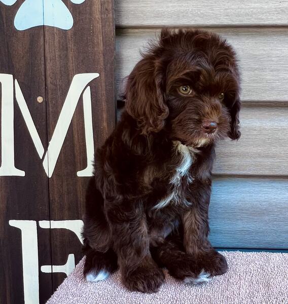 message poodleswv304 about this ad Born 7/12/25. His sire is AKC Poodle (Mini)13 pounds and his dam is AKC Cavalier King Charles Spaniel (Toy) 15 pounds. Up-to-date on vaccines, 100% DNA tested parents, health guarantee included.3500.00 Evan is a rich chocolate F1 Cavapoo perfectly accented with snowy white abstract markings. He's a confident and brave young boy who approaches new situations with caution, always looking before he leaps. His gentle nature makes him a joy to groom, and he's a breeze to handle. This little guy has a hearty appetite and loves his mealtime. When it's playtime he's an energetic and playful pup who enjoys exploring his surroundings. He especially loves time in his favorite puppy gym where he can run play, and have fun! After a good workout with his brothers and sisters he truly enjoys lap time and getting his belly rubbed . He's well socialized and gets along well with others. Located in Southern WV, Transportation available. message poodleswv304 about this ad |
