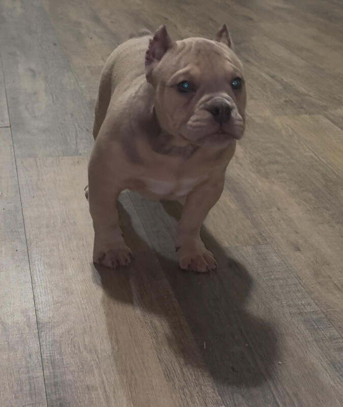 Female micro bully looking for a new home for the holiday Parents are Lilac Tri and Sable Tri. Both are micro.