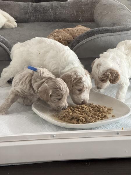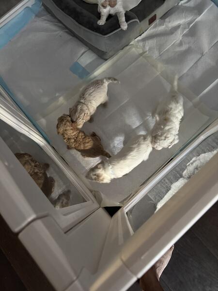 message dndnl3180 about this ad Beautiful F1 B golden doodles parents are AKC registered all shots up-to-date pops, comes with first rounds of vaccines. |