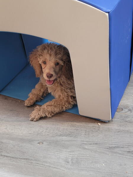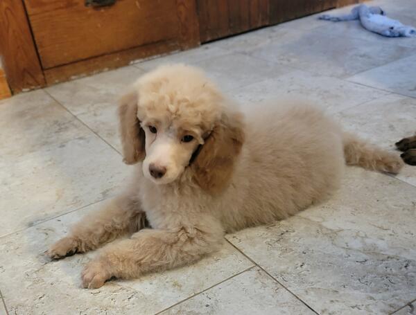 message awesomepaws about this ad Meet Dark Blue Collar Male! This handsome Moyen Poodle is from homegrown lines! His mom is Lollipop (18 tall & 25 lbs, brown & white parti) His dad is Angus (17 tall & 25 lbs, rare caf au lait sable) They both have five to ten generations of carefully selected breeding behind them. This puppy is the perfect mix of beauty, brains, and temperament. Dark Blue Collar Male is loving, playful, and beautiful! He loves toys, enjoys exploring, and is happiest when hes with people. His sweet, people-pleasing nature makes him a wonderful fit for any family lifestyle. Like his parents, hes the kind of dog who can keep up with an active household yet settle right in for cuddle time. Puppies are raised in our home with love and care. He is PET only. There is a strict spay/neuter contract. Dark Blue Collar is 100% purebred Moyen Poodle, AKC papers (if desired) after proof of spay/neuter. He is up to date on vaccines and dewormed. Each of the puppies comes with, 5-year genetic health guarantee, lifetime support, puppy goodie bag including food, toys, collar, and leash. Our location is in Poplar Grove, IL, conveniently situated in north-western Illinois. We are just a 15-minute drive from Belvidere, 30 minutes from Rockford, 1 hour from Madison, WI, and about 1 hour and 15 minutes from Chicago O'Hare Airport. (224) 639 6601 JOANNE VISIT OUR WEBSITE AWESOME PAWS . NET message awesomepaws about this ad |