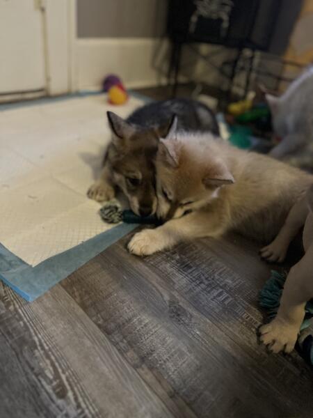 message beccacallahan19 about this ad Ohio Birthday 01/19/2025 About 35% grey wolf based on parents and previous litter embarks. Both parents dna tested and no health issues. Mom is shy but sweet and dad thinks he is a lap dog. Both indoor dogs. Pics of parents and embarks in photos. Will have age specific vaccines and be dewormed Must have proper fence/ enclosure and be in a legal state. Message for info. I do have pics of previous litter as well. |