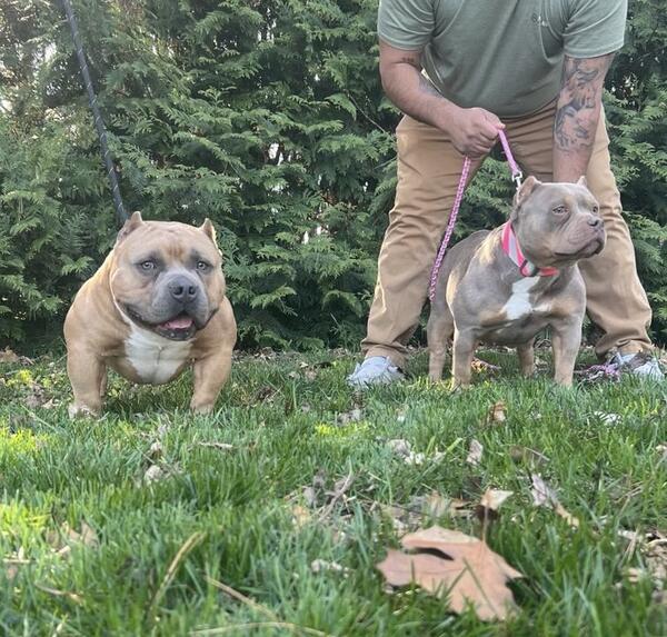 message uncleray about this ad I have 1 male pup left looking for his forever home. Pup is 16 weeks and utd on shots and wormer Mom and dad are pictured above. Dad is a R2G2 son and built like a tank! Moms top side is Daxline and bottom is Dax with some Gizmo. |