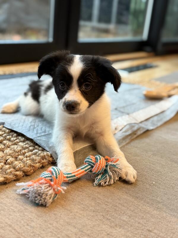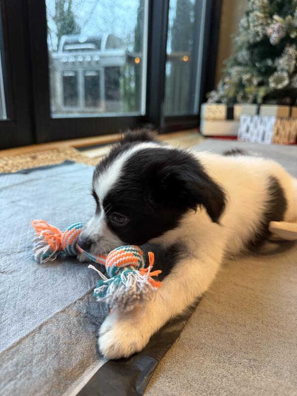message rebeccatwomey26 about this ad The sweetest most angelic 9 week old mini Australian Sheppard is needing a new loving home! She is 4lbs and mom was 10 dad was 18 so she should only grow to around 15! She is fully vaccinated, rehoming with everything you need from crate, bed, training pads, food, treats, toys, shampoo, vitamins, and even a Christmas sweater! Just got her as a family Christmas gift but realized very quickly my spouse and I travel too much for work and our kids arent responsible enough to take after a puppy. Needs a new super loving home! |