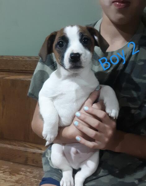 message lmmartin about this ad ADOPTION FEE REDUCED- We have a litter of 7 short-legged, NKC registered puppies born 9-2-25. 2 boys and 1 girl are still available at this time. They are 10 weeks old now. They have short, smooth coats and have their natural length, un-docked tails. Have had 2nd puppy vaccinations and completed five rounds of deworming so far, and have been vet checked and cleared. Puppies weighed in at 6.25 pounds to 8 pounds at 10 weeks of age. Mom weighs around 20 pounds and dad weighs around 12 pounds. Parents are both excellent rodent hunters here on our farm. Fully weaned onto Purina One puppy food and are ready for their new homes! Any additional questions, just let me know. |