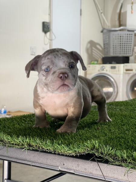 message bayareabossdawg about this ad Stud fee is currently 2500 including shipping Micro Americas Bully Color: Chocolate Merle (707)739-6502 The pups are his production |