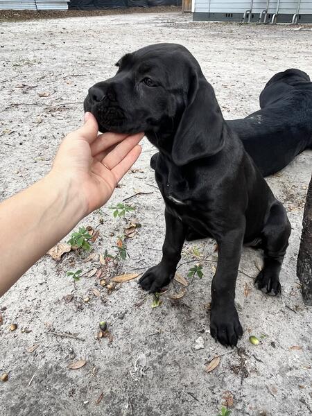 message canecorso77 about this ad I have 1 female puppy that in in dire need of a good home! -Shes jet black with a little patch of white on chest. -Born on 8/22/24 -ICCF registered, with health certificates and 4 generation pedigree of both parents. -Tails docked. -First round of shots and up to date on deworming. -Potty training, socialization and basic commands started Your Puppy Pack Each puppy comes with a take-home package including all paperwork, preventative medications for fleas, ticks, and heartworms, breed information, and a detailed 4-generation pedigree. Meet the Parents Sire: A robust blue brindle, 120 lbs, ICCF registered. Dam: A sleek jet black, 110 lbs, dual AKC and ICCF registration. Ready for a loyal, loving addition to your home? PM us now for more details and exclusive photos! Email: carahkowalchuk@gmail.com or give us a call at 3526721624 to speak with Carah. We are located in Ocala, Florida Let one of these charming Cane Corsos become your newest family member today! message canecorso77 about this ad |
