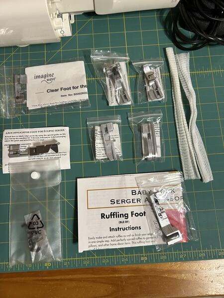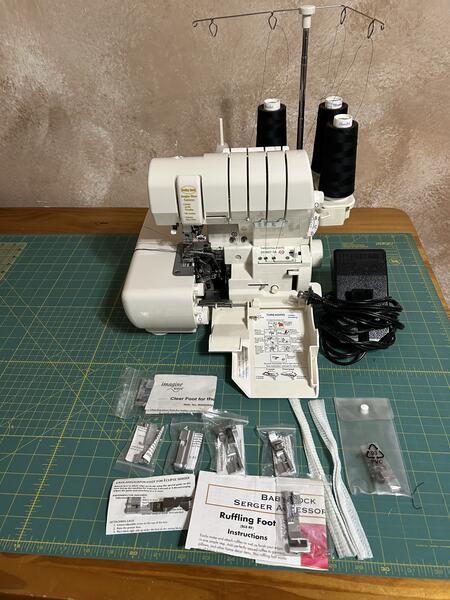 message ldybug about this ad I have a lightly used, one owner Baby Lock Imagine Wave Serger for sale that includes: 1 user manual 1 Workbook 1 ruffling foot 1 5mm cording foot 1 elastic foot 1 lace applicator foot 1 blind hem foot 1 beading foot 6 spools of thread Foot controller Local pick up only |