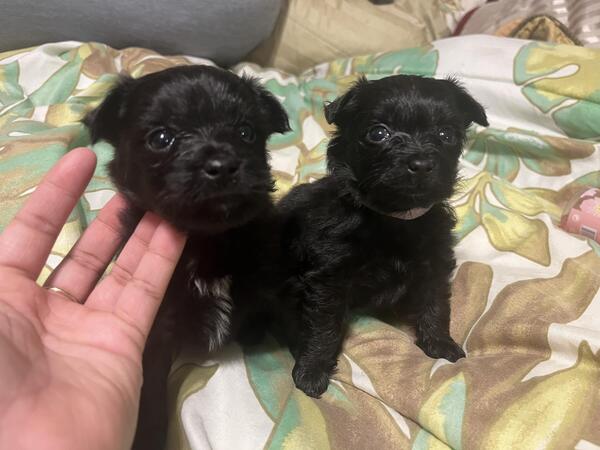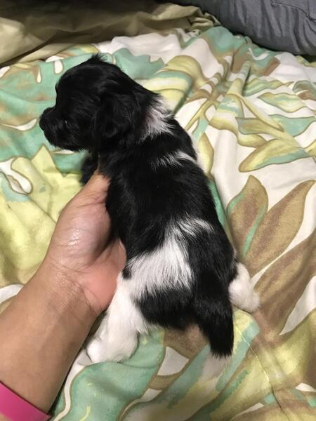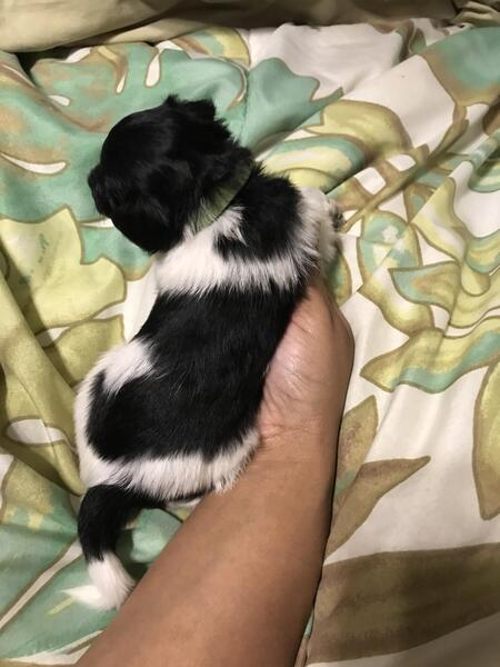 message fee1724 about this ad ADORABLE PUPPIES RAISED WITH LOVE They were born on December 29th, 2023. I have two girls and three boys. One girl is mostly black with a tiny patch of white on her chest. The other girl is all black and is the smallest one of the litter. The boys have unique black and white patterns. They have already received their first round of puppy shots with their papers for proof. Mom is a Miniature Poodle (all black) and dad is a Pomeranian ( black and white with black spots on his legs and feet) Mom is 2 years old and dad is 3 years old. Mom is 11lbs and Dad is 10lbs |