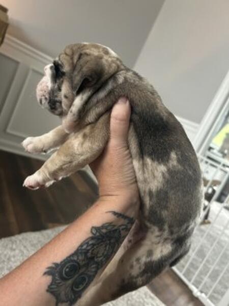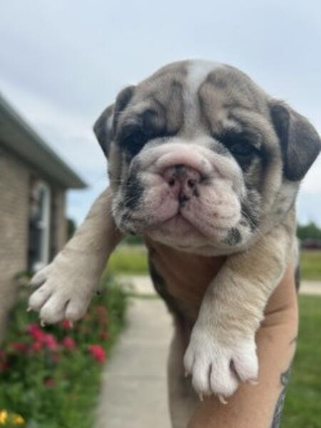 message amberjordan about this ad I have 3 AKC English Bulldog Puppies that will be ready for their Furever Homes on June 30th! I have one Female Merle and 2 males a blue tri and one brindle. Raised in a loving home they are all well socialized and we are starting crate and potty training. They are 5w old I take pride in my pups and make sure they are given the utmost care and ready for you to take home! Serious Inquiries Only please. Pictures of Dad (Blue Merle and Mom Fawn w black mask included in photos) 513-236-8726 feel free to call or text if you are interested. |