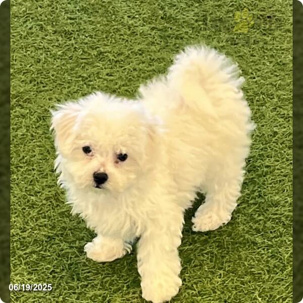 message puppygrammi about this ad This cute Female Bichon Frise was born on 3/5/25. He is well-socialized, Microchipped, UTD vaccinations, and doing well on cage training. |