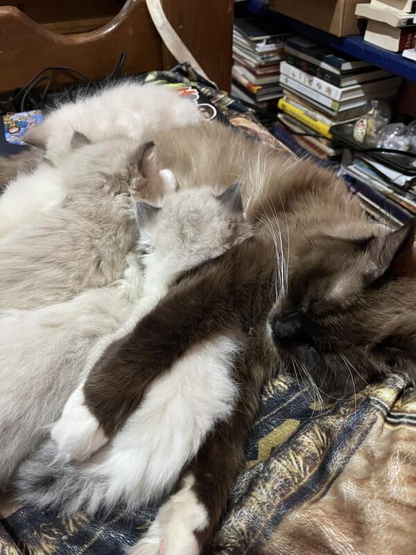 message gbrlln6505 about this ad I have five sweet kittens. Handled daily. Playful, sweet and loving. 3 girls and 2 boys. They are currently 6 weeks and will be ready to go to new home Jan 10th and on. They will be vet checked and have first shots. Dad is a papered Ragdoll and mom is 75%Ragdoll and 25% Scottish fold. So the kittens will are 12% Scotty. Can hardly notice they have the full ragdoll personality Mom and dad are pictured. All kittens have their own unique personalities and are all super friendly. There will be a $50 deposit if holding kittens. Can FaceTime. Thanks! |