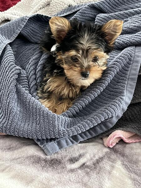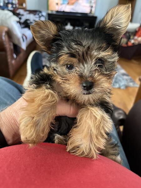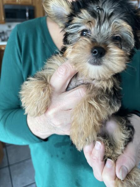 message patspuppies20 about this ad I have 1 AKC Yorkshire Terrier puppy left and he is ready for a new home.I have both Mom and Dad in my home.Both have excellent temperament.He has his first shots and precautious dewormer.He is a very handsome little pup and is very playful.Call or Text 231-794-8950 for more info.Price reduced they are AKC registered. |