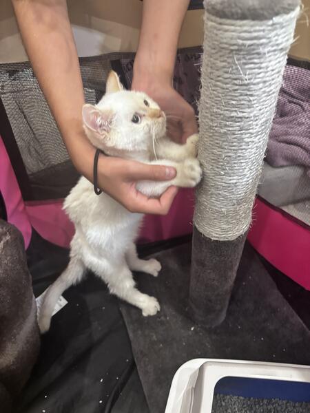 message lara03 about this ad Small white munchkin cat for sale. Calm, cuddly and warm kitten, very sweet and child friendly. Kitten is up to date on all of her vaccines, purchased from cat store. She is in need of a new home, that can provide her with love and attention. Message for price details, and more information. 3136700807 |